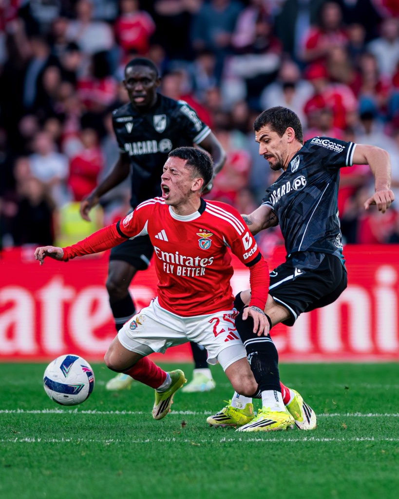 O Vitória estava a sentir muitas dificuldades com a pressão do Benfica e acabou por ceder à passagem do quarto de hora. Richard Ríos roubou a bola a Samu e, em sprint, só parou na grande área adversária, onde assistiu Prestianni para o 1-0.